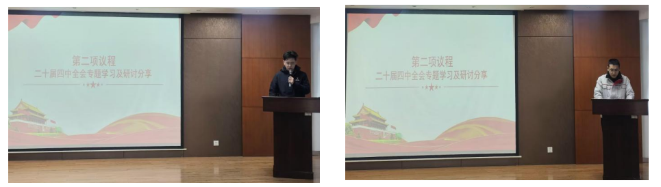 隨后,兩名黨員同志作為代表分享了自己的學習心得體會。郝鵬程同志表示:“黨的二十屆四中全會描繪了以中國式現代化全面推進強國建設、民族復興偉業的宏偉藍圖,為新時代新征程指明了前進方向,當前汽車產業正經歷百年未有之大變局,電動化、智能化、網聯化浪潮席卷全球,我們應重點做好兩方面工作:一是完善產業生態, 推動汽車上下游協同發展;二是深化國際合作,提升中國汽車品牌全球競爭力,作為寧波檢驗中心的一員,自己要發揮橋梁紐帶作用,助力企業把握發展主動權。”張星同志表示:“黨的二十屆四中全會專題研究進一步全面深化改革、推進中國式現代化問題,這是黨中央從全局和戰略高度作出的重大決策。作為一名預備黨員,自己將以正式黨員標準鞭策自己,把學習熱情轉化為提升黨性、增強本領的實際行動。積極推進業務工作,虛心向同志們學習,立足本職崗位,勇于嘗試創新,努力解決工作中的實際問題,為落實全會精神貢獻寧檢人的一份力量。”
