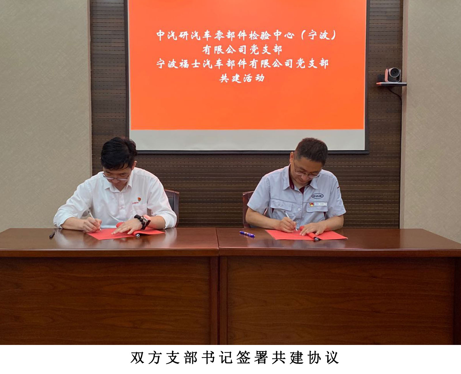 寧波汽車檢測中心黨總支下屬的中汽研汽車零部件檢驗中心(寧波)有限公司黨支部(簡稱寧波鄞州中心黨支部)與寧波福士汽車部件有限公司黨支部開展黨建共建活動。