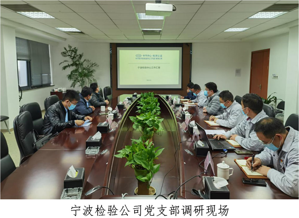 2021年3月1日-2日,中汽中心檢測(cè)認(rèn)證事業(yè)部黨委委員、紀(jì)委書記史永萬到寧波檢驗(yàn)中心開展調(diào)研工作,并就學(xué)習(xí)宣傳貫徹黨的十九屆五中全會(huì)精神及習(xí)近平總書記在黨史學(xué)習(xí)教育動(dòng)員大會(huì)上發(fā)表的重要講話精神講授《以縱覽歷次規(guī)劃為切入學(xué)黨史 為落實(shí)“十四五”規(guī)劃開好局》專題黨課,寧波檢驗(yàn)中心黨總支書記、總經(jīng)理李海斌等陪同調(diào)研。