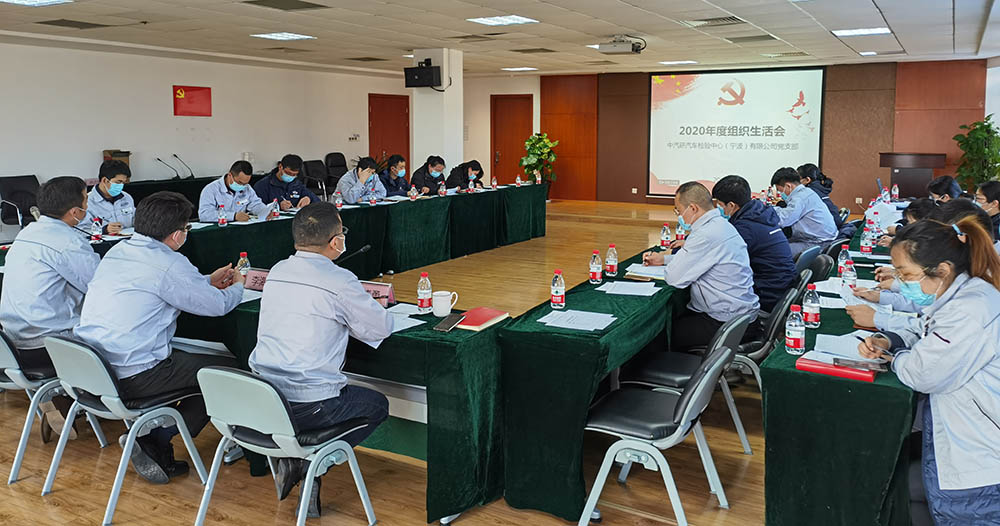 2021年3月4日,中汽研汽車檢驗中心(寧波)有限公司黨支部召開2020年度組織生活會,開展民主評議黨員工作。寧波檢驗中心黨總支書記李海斌、組織委員朱曉勇及支部全體黨員參會,會議由支部書記胥峰主持。