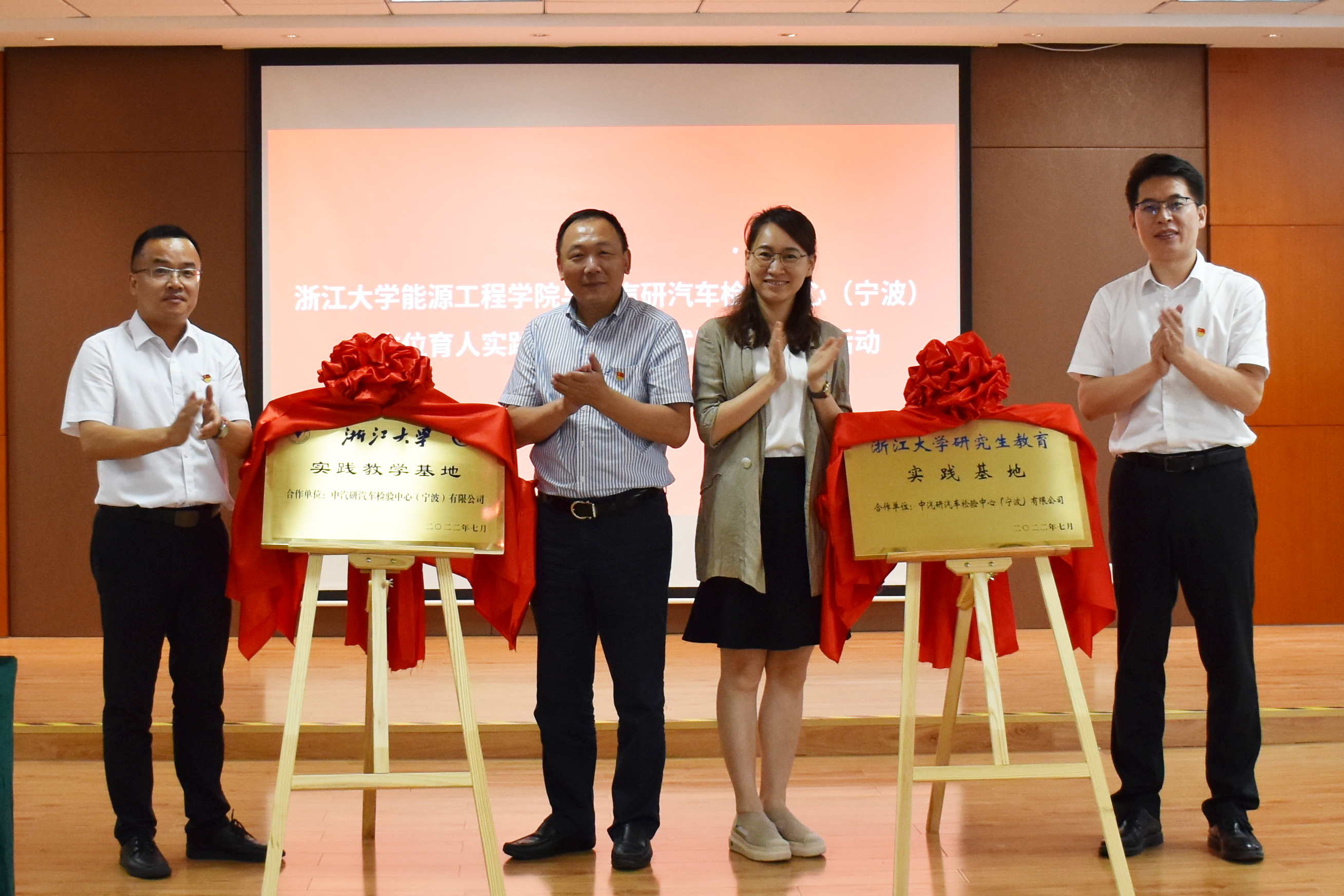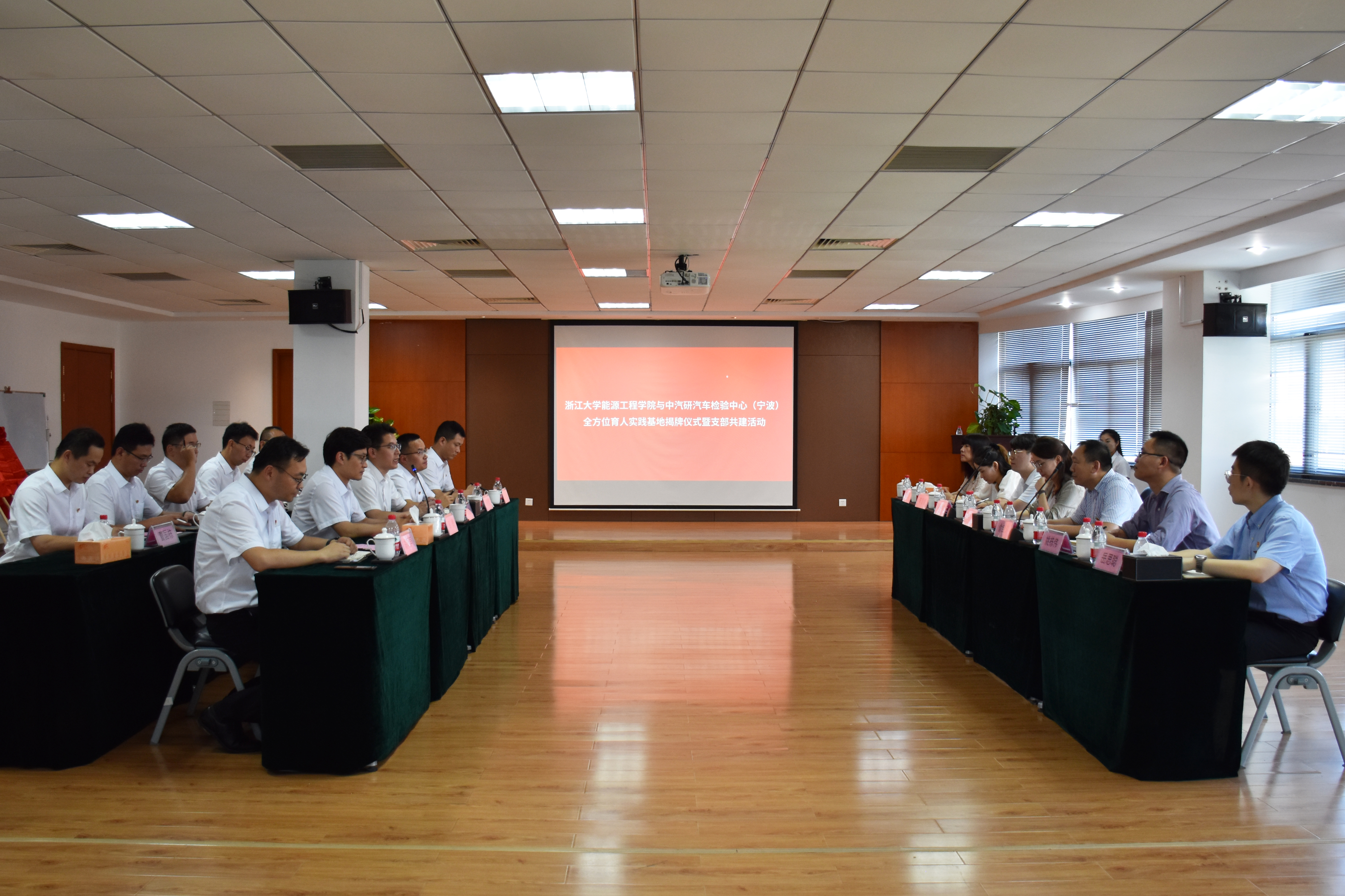 2022年7月8日,浙江大學能源工程學院黨委副書記徐敏娜、副院長俞自濤帶領學院學生工作以及以動力機械及車輛工程研究所為代表的專業教師團隊一行赴寧波檢驗中心開展全方位育人實踐基地揭牌儀式暨支部共建活動。寧波檢驗中心黨總支書記、總經理李海斌,寧波檢驗中心黨總支委員、副總經理朱曉勇,寧波檢驗中心黨員領導干部及代表參加活動?;顒佑蓪幉z驗公司黨支部書記、寧波檢驗中心副總經理郭勇主持。