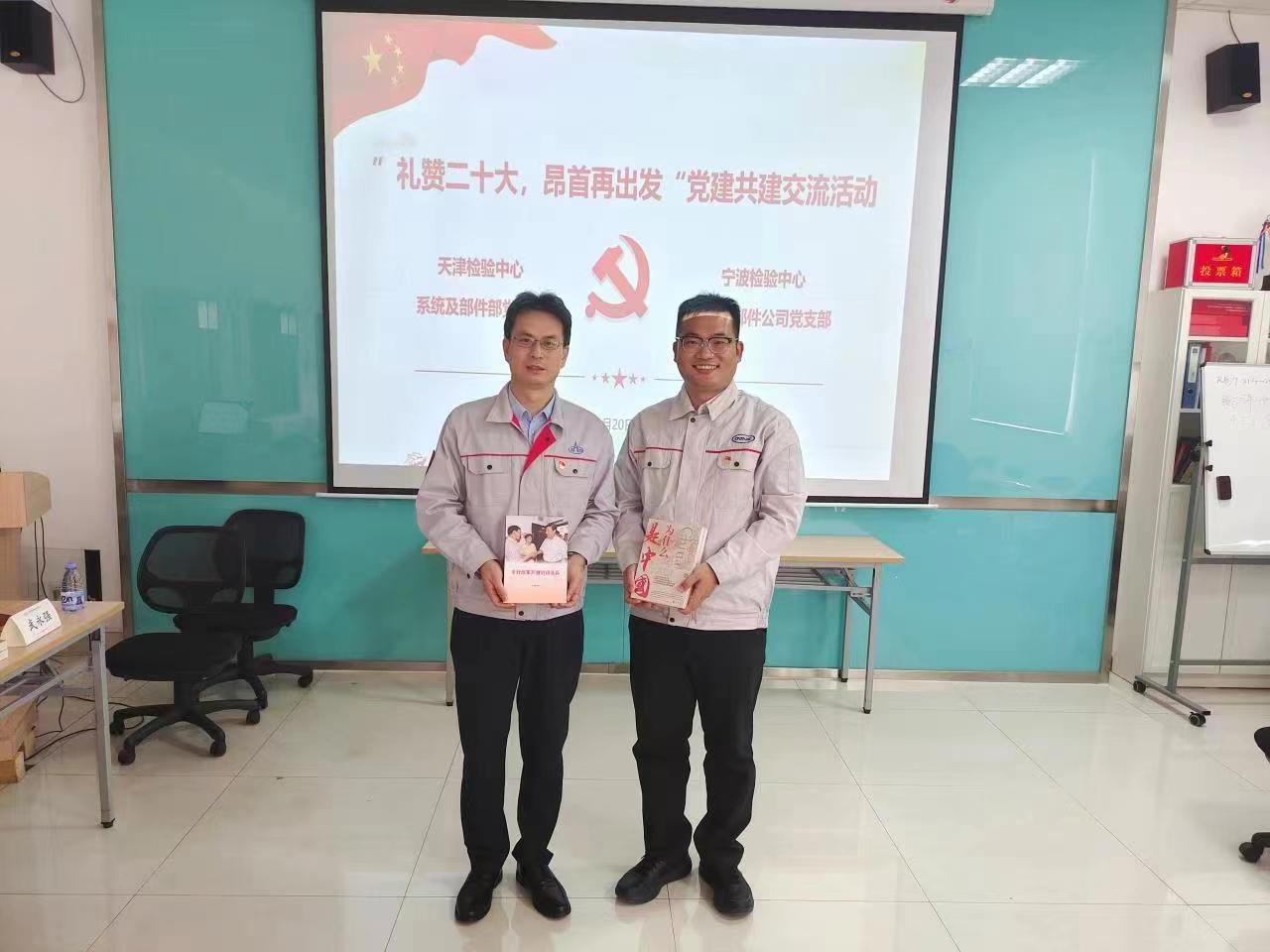 為深入學習習近平總書記在中國共產黨第二十次全國代表大會上的講話精神,通過黨建促進經營發展,提高黨建工作能力水平,加強黨建經驗交流,寧波檢驗中心寧波零部件公司黨支部與天津檢驗中心系統及部件部黨支部于2022年10月20日開展了“禮贊二十大,昂首再出發”主題聯合黨建活動。寧波檢驗中心黨總支委員、寧波零部件公司黨支部書記曹建驍,天津檢驗中心副總工程師、系統及部件部黨支部書記杜天強及雙方黨員代表、相關業務負責人出席了本次活動。