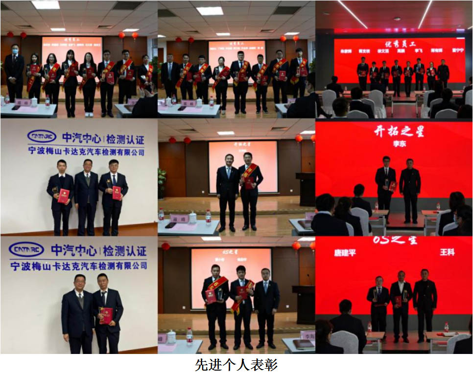 2022年1月23日,中汽中心檢測認(rèn)證事業(yè)部寧波檢驗中心成功召開“‘寧’心聚力十四五,‘波’瀾壯闊‘甬’前行!”2021年總結(jié)表彰大會。中汽中心黨委委員、副總經(jīng)理,檢測認(rèn)證事業(yè)部黨委書記、總經(jīng)理周華以視頻形式出席會議,寧波檢驗中心總經(jīng)理李海斌、寧波零部件公司副總經(jīng)理曹建驍、寧波梅山公司總經(jīng)理王振新、寧波檢驗公司副總經(jīng)理朱曉勇、常州檢驗中心副總經(jīng)理田涌君、常州檢驗中心副總經(jīng)理張海波,寧波零部件公司副總經(jīng)理傅鍵以及寧波檢驗中心全體員工參加本次大會,會議由寧波檢驗中心副總經(jīng)理胥峰主持。