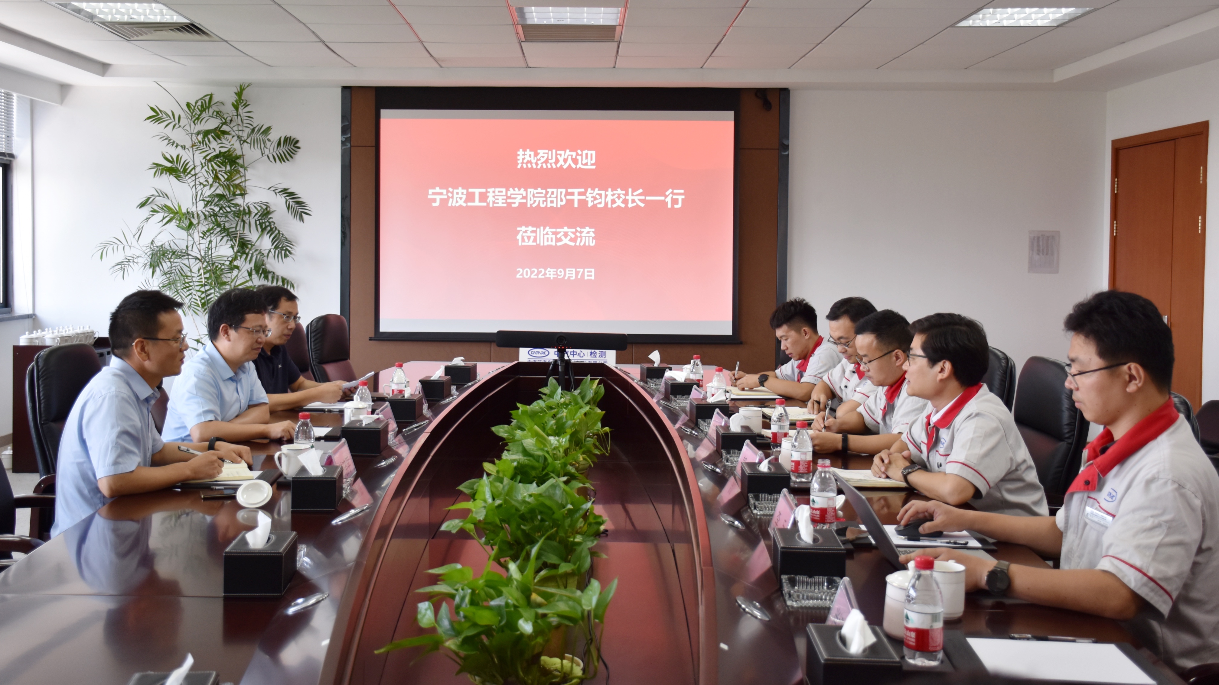 2022年9月7日,寧波工程學(xué)院校長(zhǎng)邵千鈞一行到訪寧波檢驗(yàn)中心,與寧波檢驗(yàn)中心副總經(jīng)理朱曉勇、郭勇等人進(jìn)行座談交流,雙方就能力建設(shè)、科研合作、項(xiàng)目申報(bào)、人才培養(yǎng)等事宜進(jìn)行了深入交流。