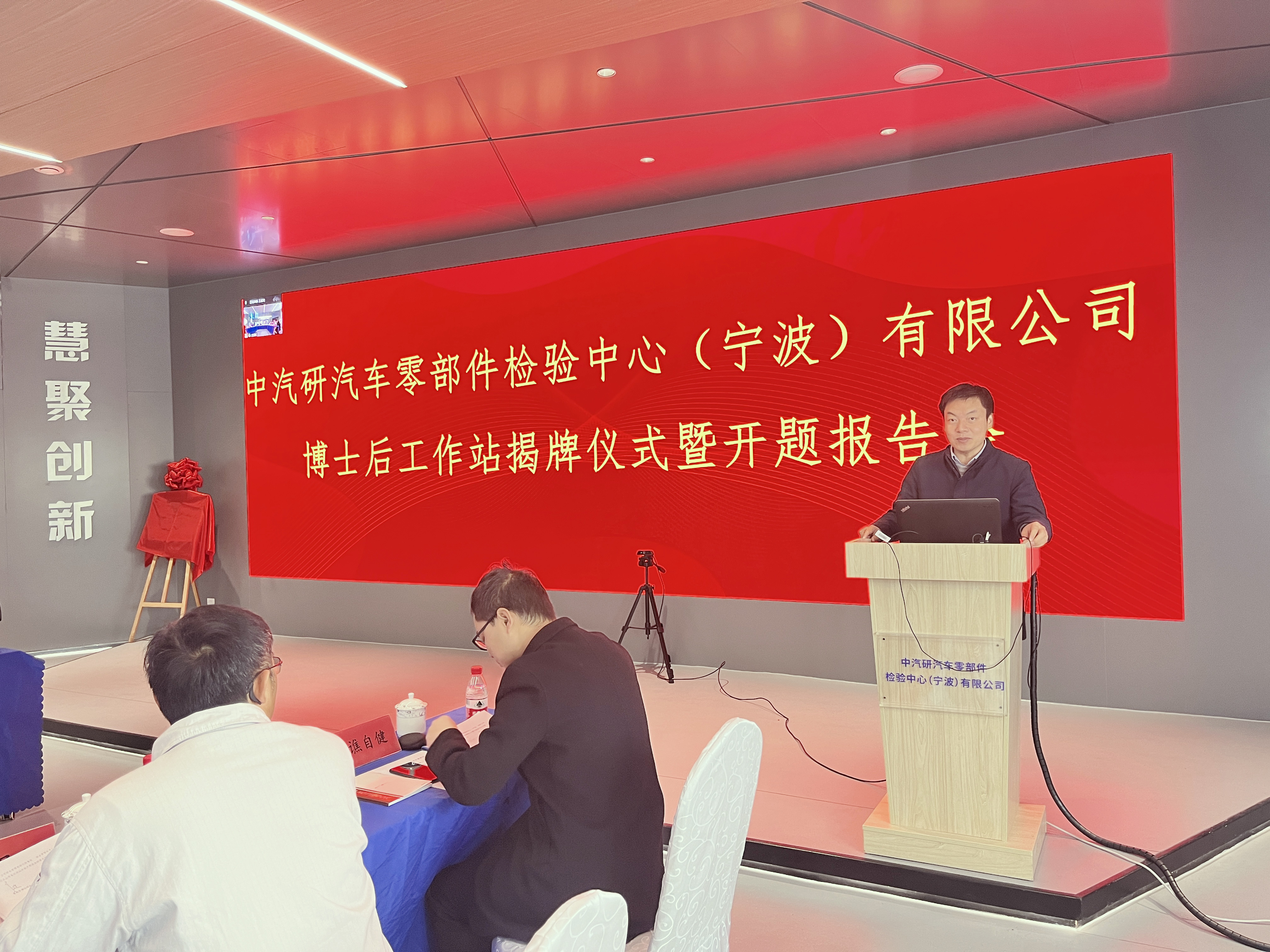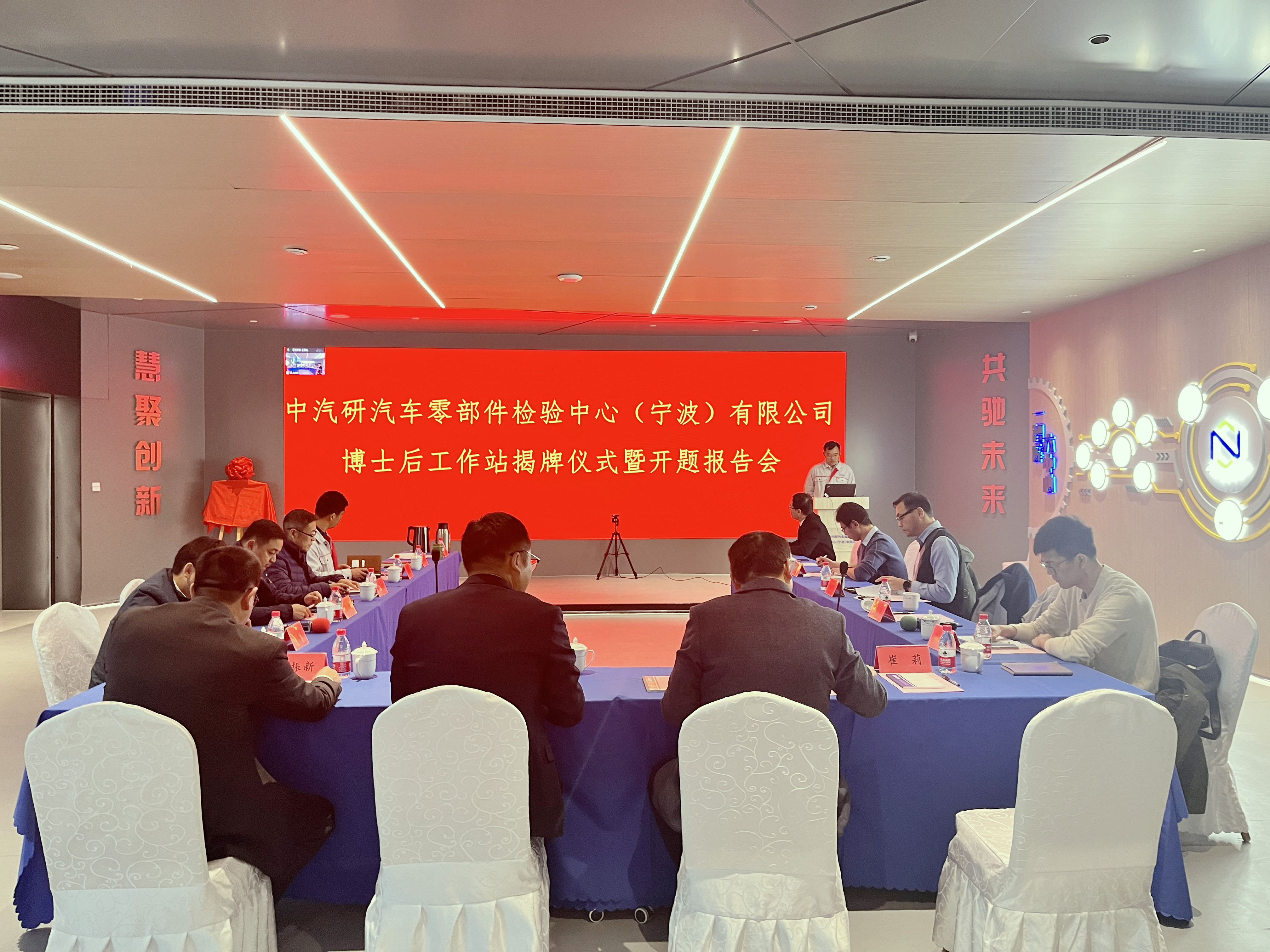 12月1日,博士后工作站授牌儀式暨開題報(bào)告會(huì)在中汽研汽車零部件檢驗(yàn)中心(寧波)有限公司(以下簡稱“寧波零部件公司”)舉行。寧波市人力資源和社會(huì)保障局專技處處長郭濤、鄞州區(qū)人力資源和社會(huì)保障局專技科科長王輝應(yīng)邀出席;寧波大學(xué)機(jī)械工程與力學(xué)學(xué)院副院長彭文飛、重慶大學(xué)博士生導(dǎo)師、教授廖昌榮等評審專家,寧波零部件公司黨支部書記、副總經(jīng)理曹建驍,常務(wù)副總經(jīng)理王振新、副總經(jīng)理傅鍵等參加會(huì)議。