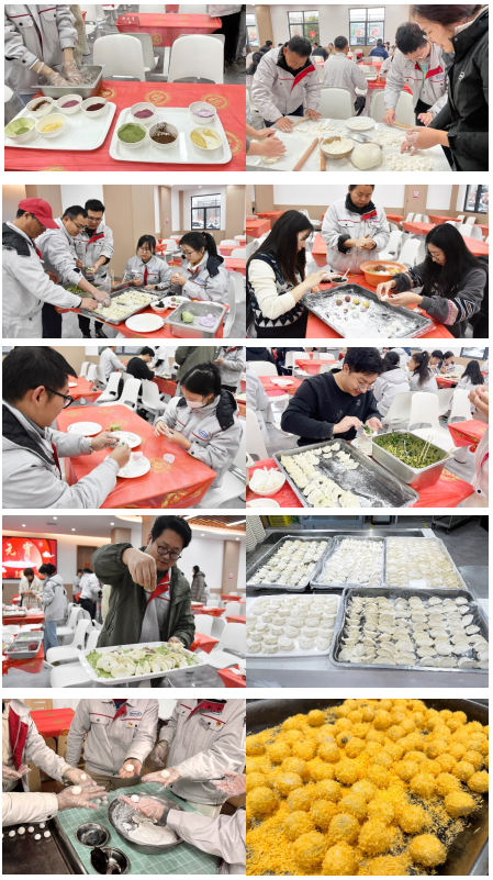 作為元宵節的必備美食,元宵自然是餐桌上的主角,北“滾”元宵,南“包”湯圓,制作方法雖然不同,卻都承載著對團圓幸福的希冀!職工餐廳一片歡聲笑語,大家干勁十足,分工合作,有的負責揉面,有的負責搟皮,有的負責包,有的現場學。大家圍在一起,相互切磋著手藝、大顯“身手”,有動作嫻熟的,也有“臨陣磨刀”的,不一會兒,一個個形態各異的湯圓和花樣繁多的餃子就“新鮮出爐”了,看著自己的勞動成果,每個人的臉上都洋溢著喜悅的笑容。