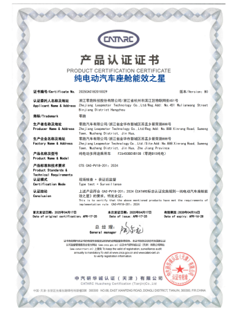 近日,中汽研汽車檢驗中心(寧波)有限公司(以下簡稱“寧波檢驗中心”)為零跑汽車全新車型B10完成“熱舒適之星”與“純電動汽車座艙能效之星項高標準認證試驗由中汽研華誠認證(天津)有限公司頒發(fā)CATARC標志認證證書。