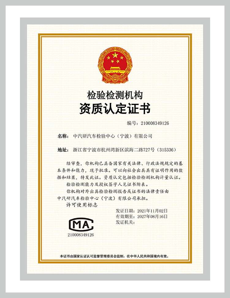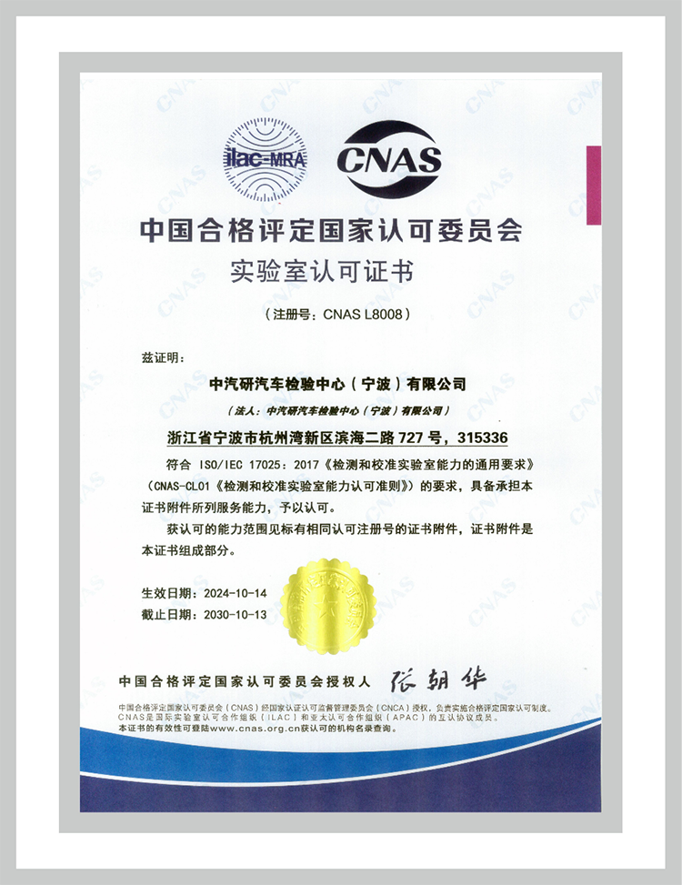 中汽認證中心委托檢測實驗室
