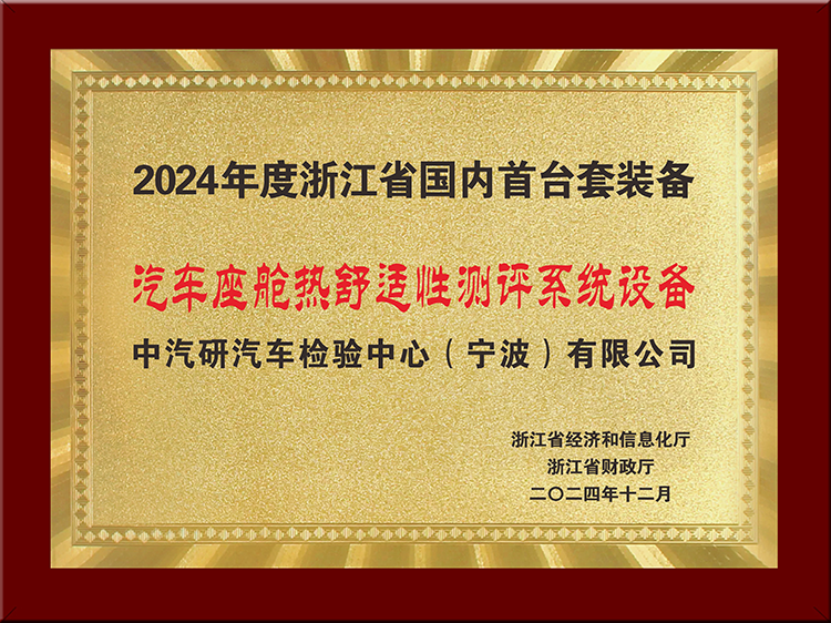 “汽車座艙熱舒適性測評系統設備”獲認定浙江省高端裝備制造業重點領域國內首臺(套)