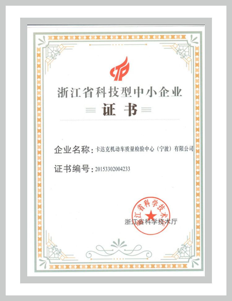 浙江省科技型中小企業證書
